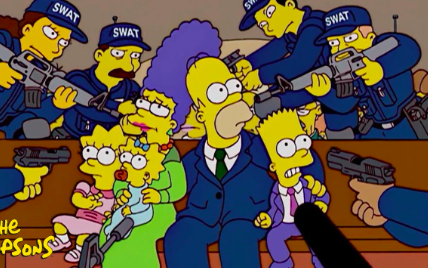 Les Simpsons s’attaquent ensuite directement à la montée du patriotisme “obligatoire”, aux mesures de sécurité accrues et à la censure de l’administration Bush facilitée par le USA PATRIOT Act.