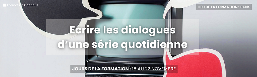 La Cité organise une formation de 5 jours (35 heures), immersive, pratique plus que théorique, en conditions réelles d’écriture, est conçue pour des scénaristes professionnel·les souhaitant s’ouvrir à l’écriture de dialogues pour la quotidienne, en vue d’intégrer l’équipe de dialoguistes d’une quotidienne.